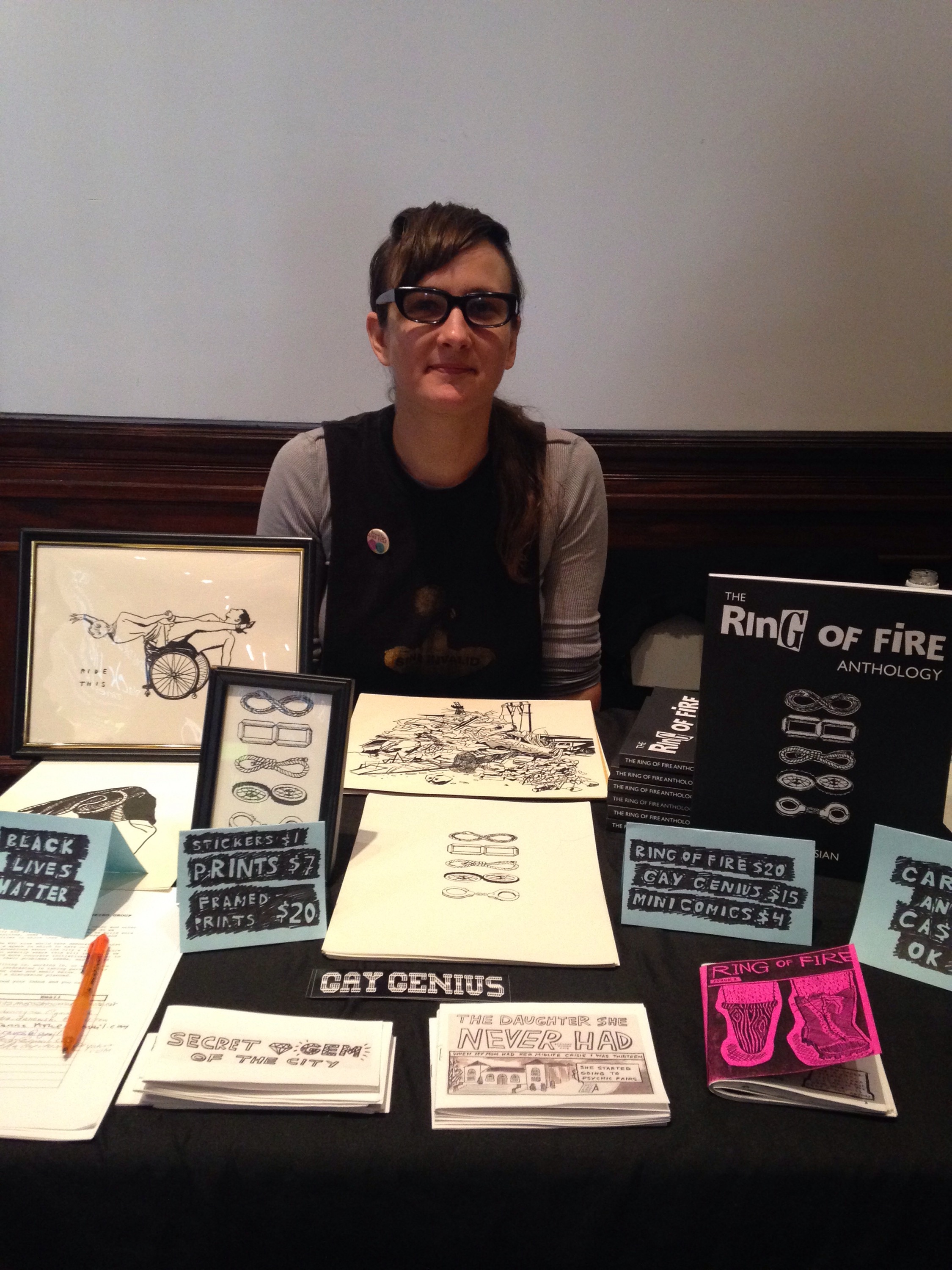 IMG_3277-1 May 2, 2015 Return to: ABOUTFull resolution (2250 × 3000) Image navigation Next Image This image depicts author E.T. Russian at the Brooklyn Zine Fest with a table covered in books, zines, comics and prints of their work.