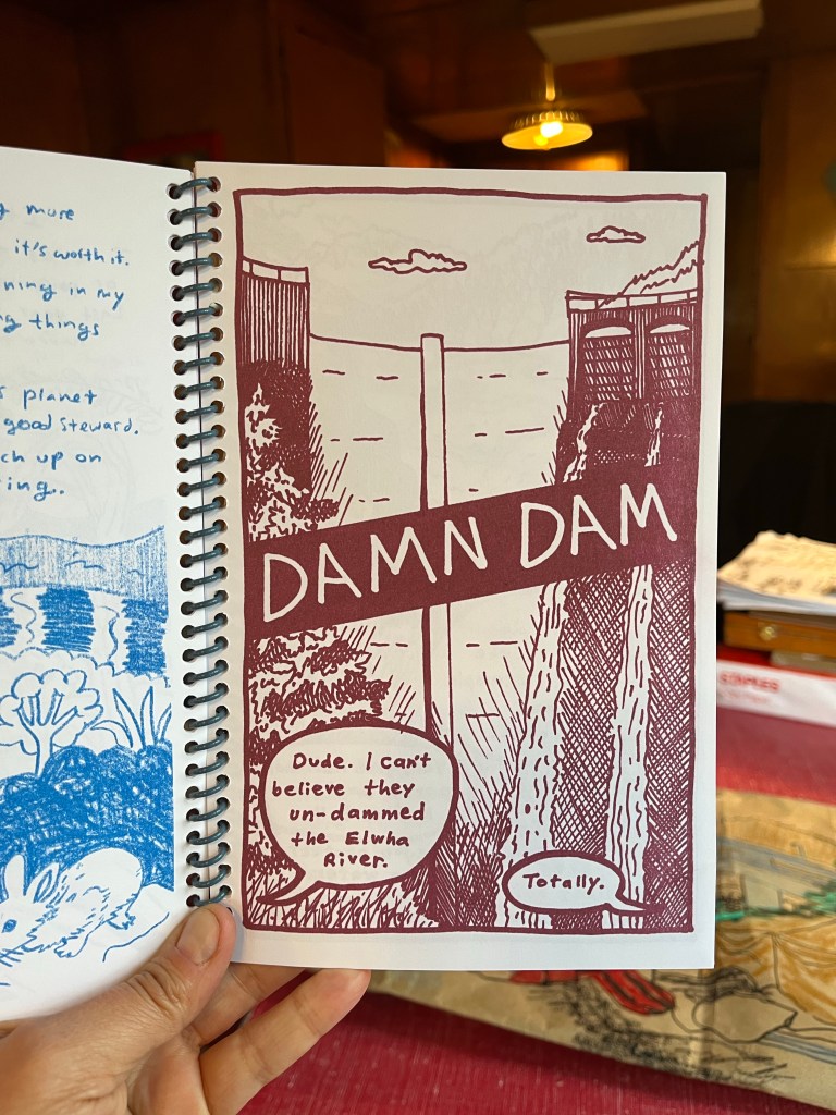 My comic “Damn Dam” is in this issue of the Trailer Blaze collection published by Short Run. It’s about the removal of the Elwha River dam in Washington State. Get a copy here