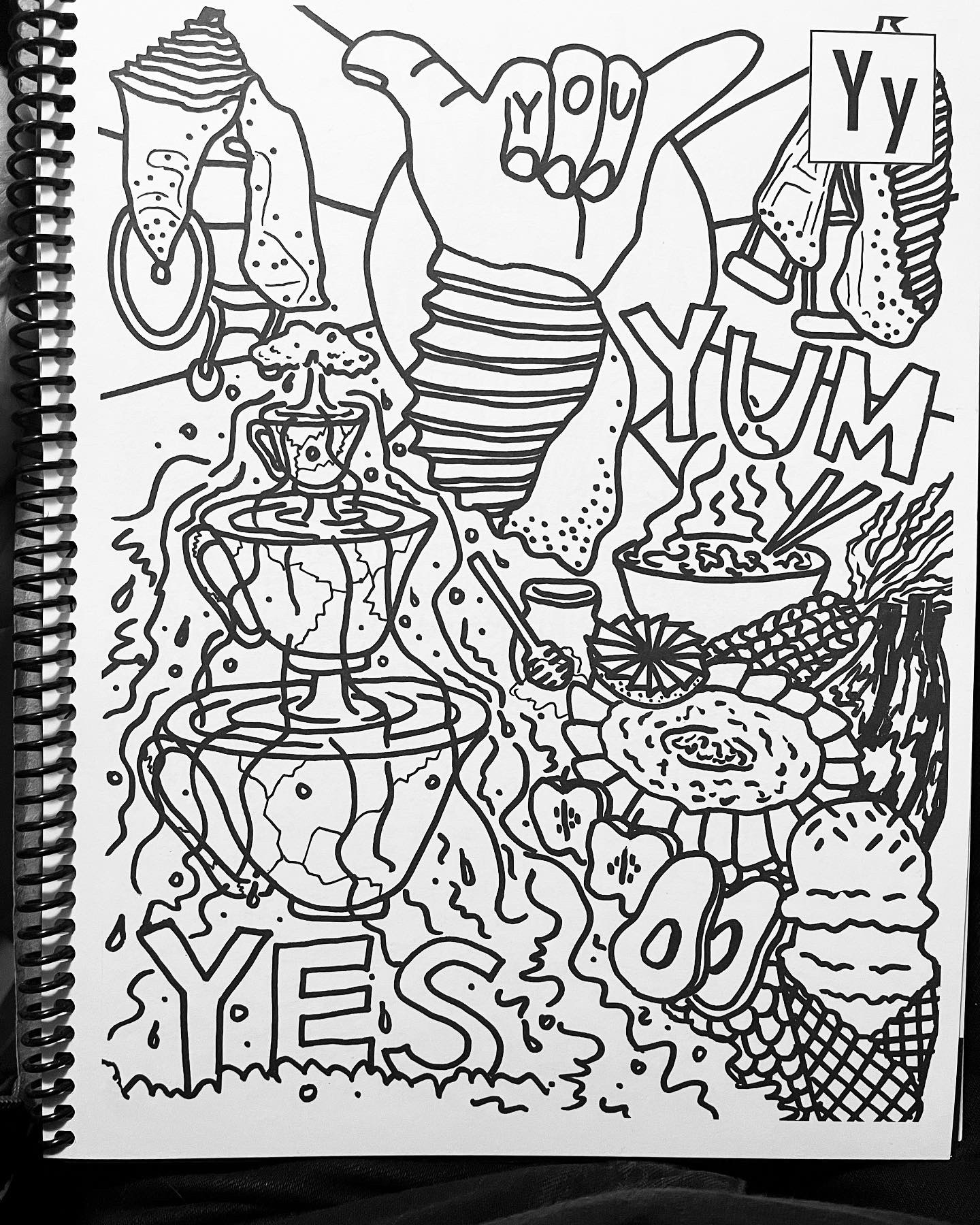 I illustrated Y for YES, YOU and YUM in this disability justice alphabet coloring book published by Sins Invalid. Get a copy here