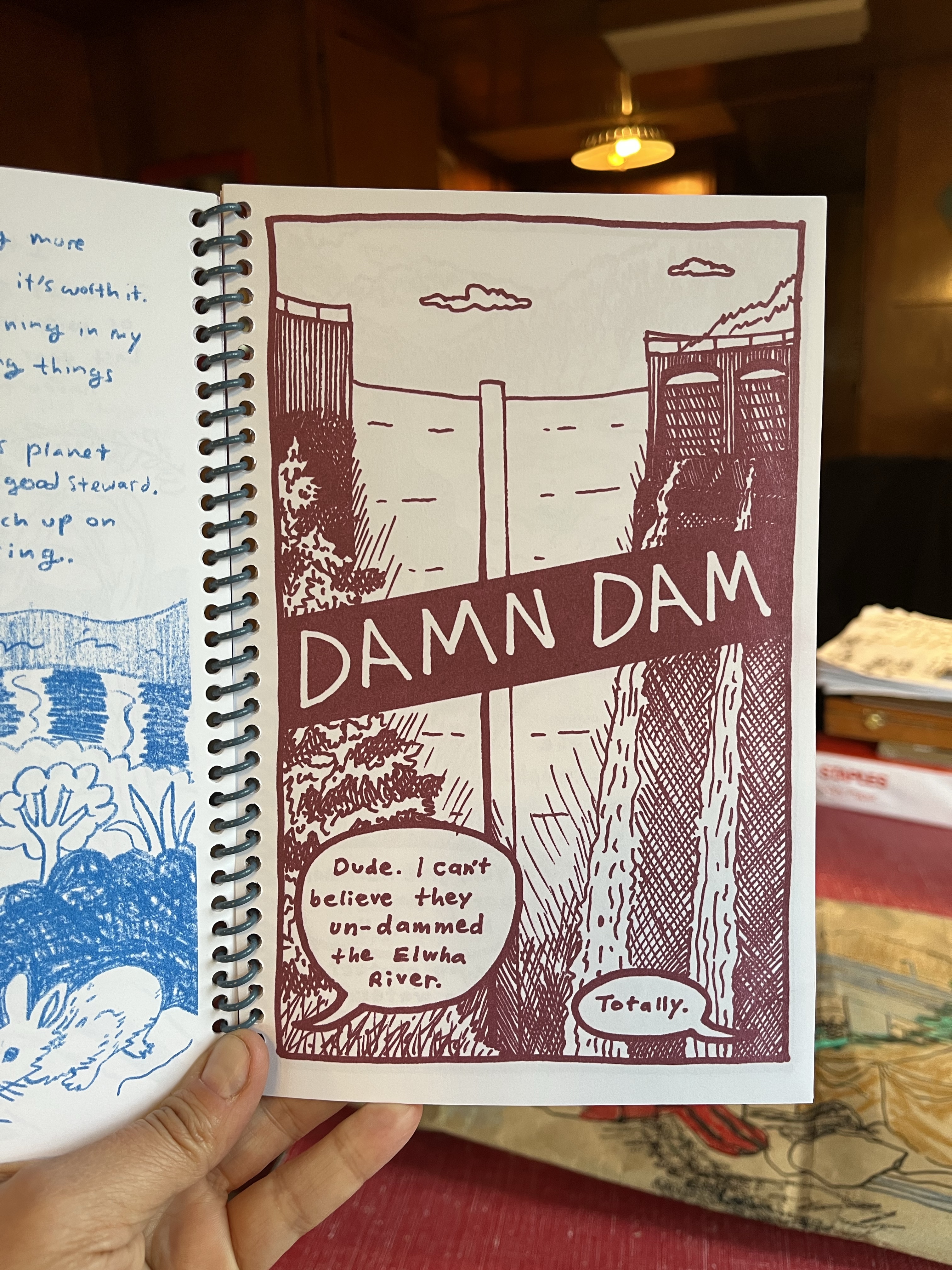My comic “Damn Dam” is in this issue of the Trailer Blaze collection published by Short Run. It’s about the removal of the Elwha River dam in Washington State. Get a copy here